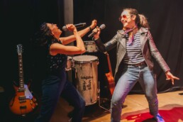 Pour les participants, tout commence par le choix des chansons, parmi un catalogue de titres variés de karaoké. Puis direction les backstages, dans une loge privative, où un coach vocal accompagne la préparation et où costumes et accessoires permettent d’entrer pleinement dans la peau de leurs artistes favoris ! Vient ensuite le moment tant attendu, le grand frisson de la montée sur scène, sous les projecteurs, micro à la main, face à une foule immersive en délire. Enfin, l’expérience se prolonge pendant l’aftershow dans un incroyable bar où l’on a le temps pour un verre, une photo, un débrief du coach, et beaucoup de rires et souvenirs.