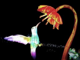 Les fils de fer, assemblés et transformés en sculptures parées de soie colorée, se transforment en forêt amazonienne ou en un bestiaire fantastique qui semble prendre vie. Et voilà que surgit un troupeau de chevaux sauvages dont les crinières volent au vent ou cinq éléphants en majesté, grandeur nature. Quoi de mieux que Paris, la ville Lumière, pour magnifier les lumières de la ville des Lanternes, Zigong, à travers cet art ancestral réputé et revisité par le talent certain des Bouglione pour le spectacle vivant.